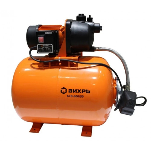 Насосная станция ВИХРЬ АСВ-800/50 предназначена для бесперебойного водоснабжения в автоматическом режиме, коттеджей, дач, ферм и других потребителей. Данная модель поддерживает необходимое давление в системе водоснабжения, самостоятельно включаясь и отключаясь по мере расходования воды потребителями. АСВ-800/50 обладает достаточной мощностью 800 Вт, максимальная глубина всасывания 9 метров, максимальная подача воды 60 литров в минуту, максимальный напор 40 метров. Емкость гидроаккумулятора составляет 50 литров.