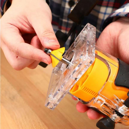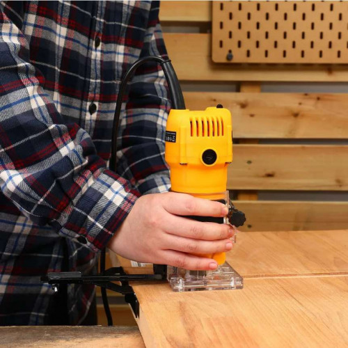 Фрезер электрический DEKO DKR800 800Вт применяется в различных столярных и плотницких работах для обработки кромок и профилей, фасок в деревянных конструкциях, для изготовления пазов и т.д. Рукоятки с нескользящими накладками способствуют надежному и комфортному хвату инструмента. Линейка, расположенная в боковой части корпуса, обеспечивает точную регулировку глубины фрезерования. Инструмент можно настроить на выполнение определенной задачи путем изменения числа оборотов.